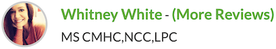 "I've never been to therapy, and and then was actually hesitant virtually opening up at first. Just Whitney has simply been so keen! I signed upwardly for BetterHelp because I was going through a breakup with bug I knew stemmed from problems with myself. I knew I felt unhappy in my relationship, merely could not for certain say why. Therapy with Whitney has been so great in helping me get more self-aware and reflective. And, of grade, the interruption up was hard at first. Simply every day, with Whitney, I was able to feel a little bit better than the day earlier."